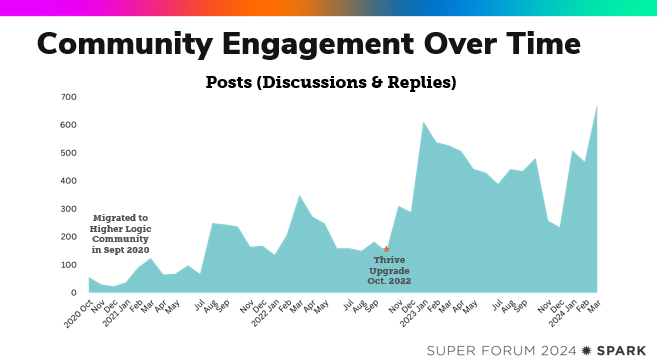 Looking at community engagement data over time, Maddie’s Fund can see that their efforts are working! After moving to Higher Logic Thrive Platform, they’ve seen the number of community posts and contributors steadily increasing.